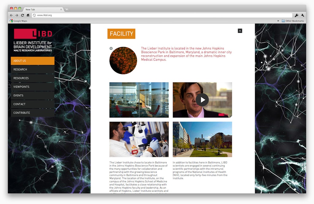 Every now and then you get to work on projects that are a) a little bit crazy and b) actually serving a really good purpose! The LIBD project (or project Epic-Intro-Ness as we call it internally) gives a new home to the brilliant scientists in Baltimore, at the Institute. The are pushing boundaries every day, researching important stuff.