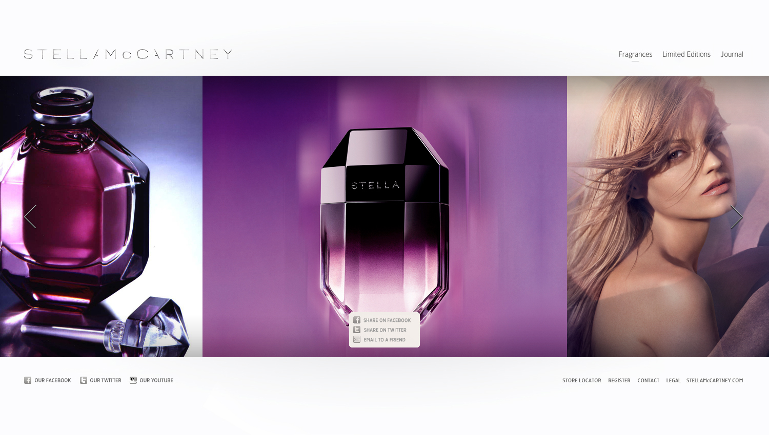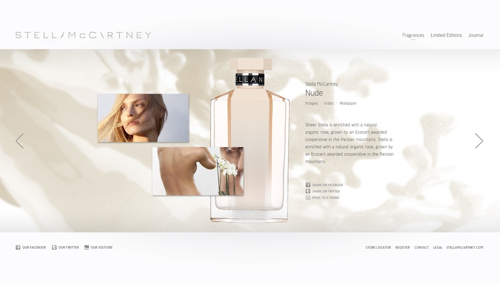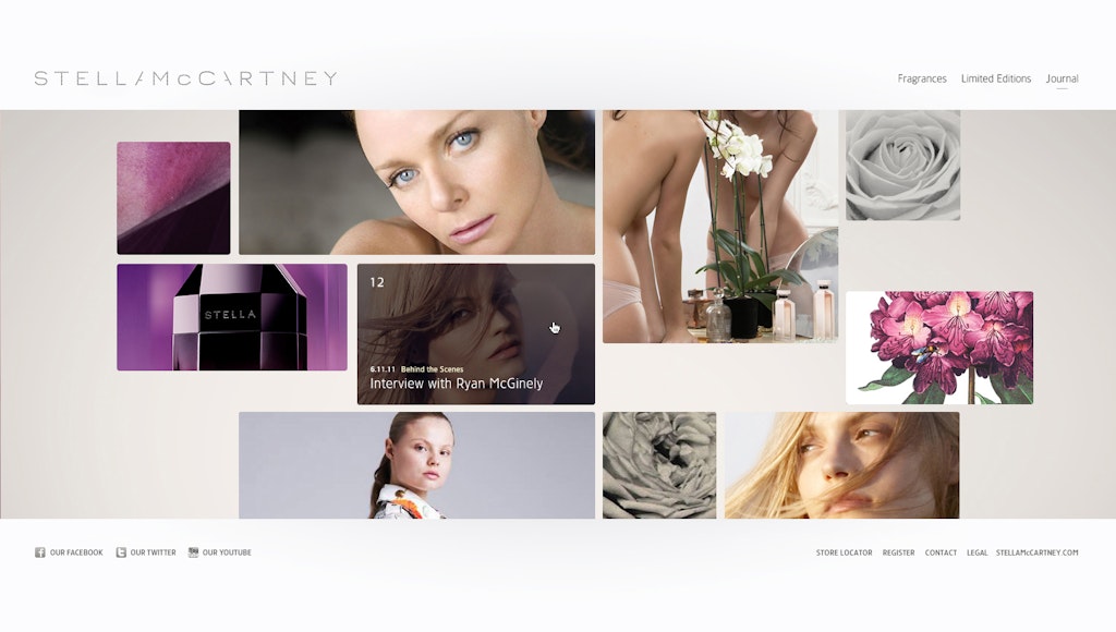 We were honoured to work with/for Hugo & Marie in the making of the new Stella McCartney Fragrance website. The final result is a sleak, html build with a very high compatibility rate. We deviced a technical setup, so that L'Oréal could just plug and play the final result in their existing environment. There were some magic, experimental effects on the homepage, but they got cancelled at the last moment :)