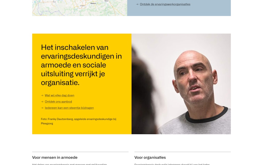de Link’s website provides abundant information for visitors. From highlights in their pioneering work in the ‘expert by experience’ approach to a map featuring all experiential work organisations across Belgium. All answers to questions about working with experts by experience and about the training to become an expert by experience can be found here.