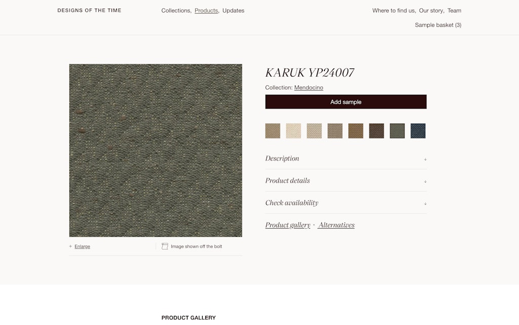 Innovative in its functionality, Designs Of The Time’s website also operates as a vital business tool. The website not only presents its fabrics in great detail but seamlessly plugs into its ERP system. This enables a live availability check and automates sample orders, saving valuable time for both clients and the company.
